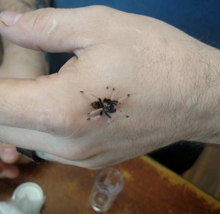 We have a variety of tarantulas to suit everyone's taste, from beginner to advanced handlers. Whether you're searching for a jumping spider, a new or old world tarantula or a scorpion we should have what you want. If we don't currently have your favorite we'll be happy to order it for you.